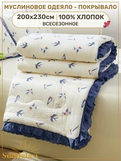 200х230, одеяло покрывало муслиновое на кровать всесезонное