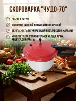 Скороварка "ЧУДО-70"7л полирован.покрытие,красная крышка