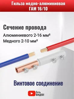 Гильза медно-алюминиевая с винтовым соединением ГАМ 16 10