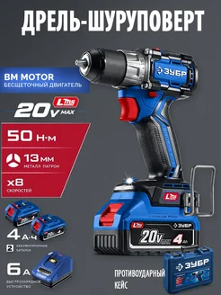 Дрель-шуруповерт бесщеточная, 2хАКБ (4Ач), кейс