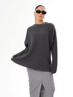 Свитер оверсайз длинный вязаный