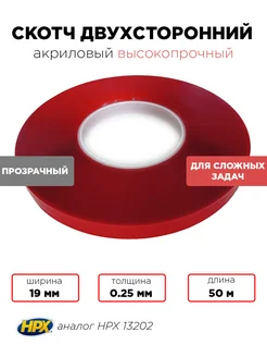 Скотч двухсторонний акриловый 19 мм толщина 0 25 мм
