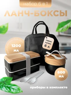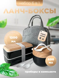 Ланч-бокс с отделениями с приборами для супа и термосумкой