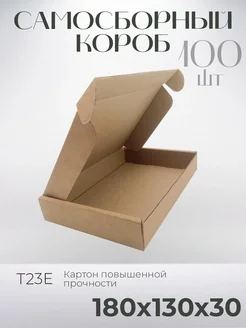 Крафтовая коробка самосборная для упаковки 18х13х3 см 100шт