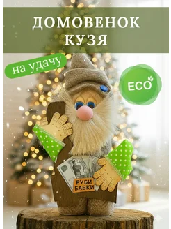 Оберег Домовенок Кузя из дерева и текстиля для дома