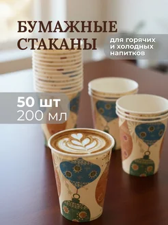 Одноразовые бумажные стаканчики 200 мл новогодние