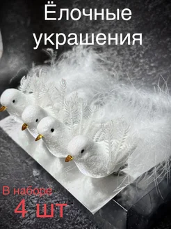 Новогодние игрушки птички на елку 4 шт