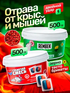 Отрава для мышей и крыс мумифицирующая зерно + брикеты