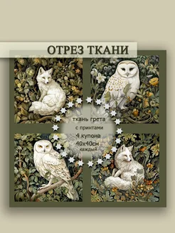 Декоративная ткань для творчества, Белая Лиса Сова, 4 купона