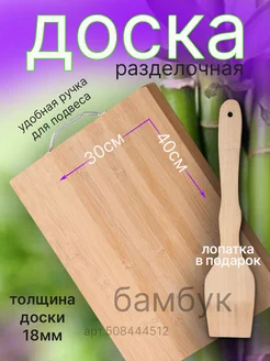 Доска разделочная деревянная 40х30х1.8 см, бамбук