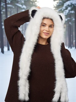 Шапка капор пушистая меховая зимняя капюшон съемный