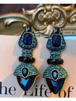 Серьги дизайнерские золото состаренное Голубая Лазурь