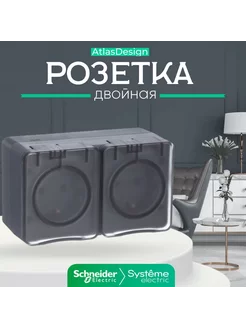 Розетка двойная Шнайдер накладная внешняя с крышкой