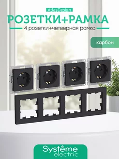 Розетка четверная Шнайдер с заземлением AtlasDesign
