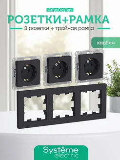 Розетка тройная Шнайдер черная с заземлением AtlasDesign