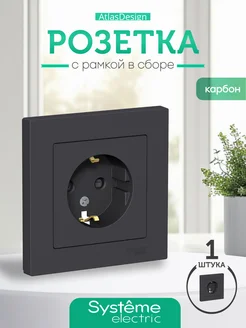 Розетка с заземлением и рамкой шнайдер черная карбон