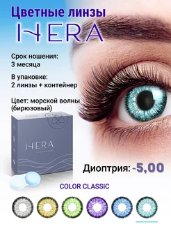 Линзы цветные бирюзовые Classic, -5,00, г8.6