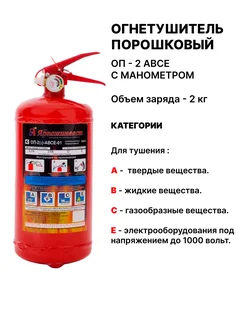 Огнетушитель автомобильный порошковый ОП-2 (З) АВСE