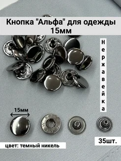 Кнопка Альфа 15мм темный никель для одежды нержавеющая