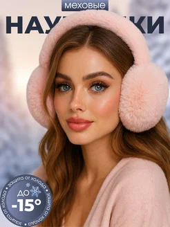 Наушники меховые зимние складные женские розовые