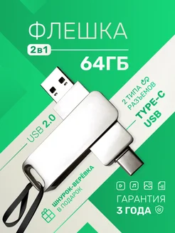 Флешка 64 ГБ 2 в 1 для компьютера и телефона USB 2 0