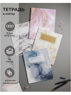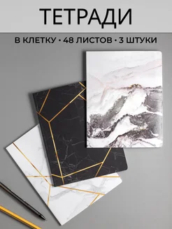 Тетради 48 листов в клетку А5 набор 3 штуки Мрамор