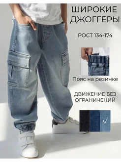 Джинсы джоггеры широкие на резинке для подростка