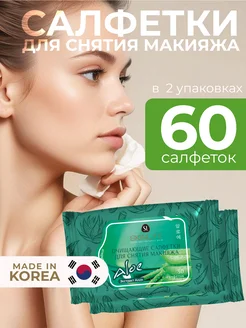 Влажные салфетки для снятия макияжа лица с Алоэ, 2х60 шт
