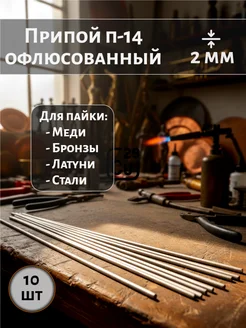 Припой п-14 офлюсованный 2 мм для пайки меди и стали (10 шт)