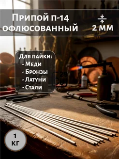 Припой п-14 офлюсованный 2 мм для пайки меди и стали (1 кг.)