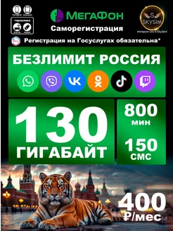 Безлимитный интернет сим карта 130Гб 800 мин Россия
