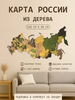 Карта России Многослойная из дерева на стену зеленая 160х90