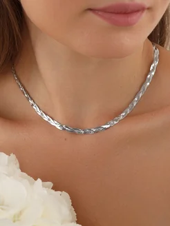 Широкое Колье косичка из 3-ех цепочек
