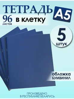Общая тетрадь А5 в клетку 96 листов 5 штук бумвинил