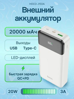 Повербанк 20000 с быстрой зарядкой 1 USB и USB-C 3А