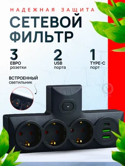 Сетевой фильтр 3 розетки 2 usb + 1 type-c