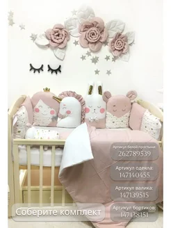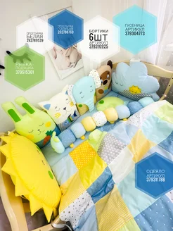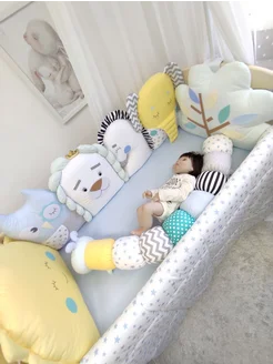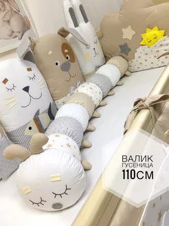 Бортики в кроватку для новорожденных, валик Гусеница 110см