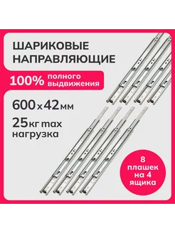 Направляющие шариковые полного выдвижения 600мм, h 42мм (4)