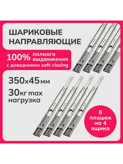 Направляющие шариковые с доводчиком soft 350мм, h 45мм(4)