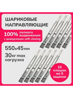 Направляющие шариковые с доводчиком soft 550мм, h 45мм(4)