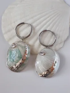 Серьги кольца с подвесками ракушки