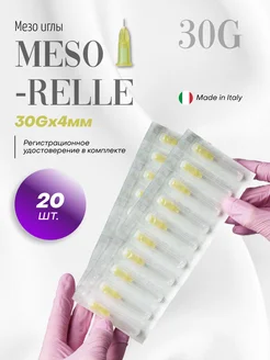 Иглы медицинские для инъекций и мезотерапии 30Gx4мм, 20 шт