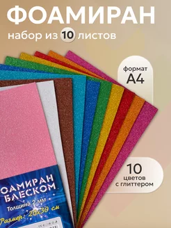 Фоамиран набор из 10 цветов с глиттером, 10 листов А4