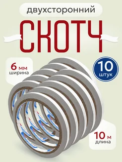 Скотч двусторонний прозрачный, узкий 6 мм*10 м, 10 штук