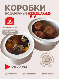 Коробки круглые с окном набор 6 шт размер 20*7см