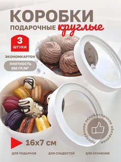 Коробки круглые с окном набор 3 шт размер 16*7см