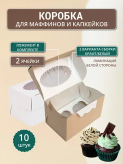 Коробка для маффинов и капкейков на 2 шт набор 10 шт