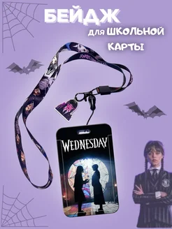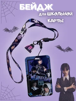 Бейдж для пропуска школьной карты Уэнсдей Wednesday с лентой