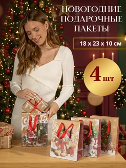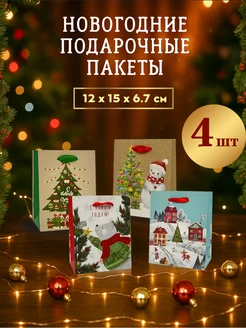Набор новогодних подарочных пакетов 4 шт крафт микс