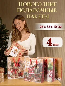 Набор новогодних подарочных пакетов 4 шт Микс Крафт